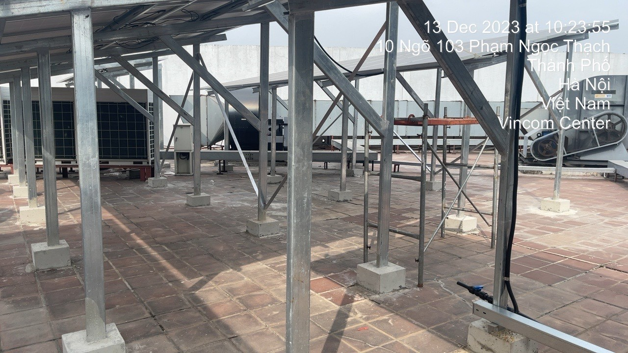 Hệ thống dự án solar rooftop được thiết kế tối ưu để phù hợp với kết cấu mái của tòa nhà Vincom Phạm Ngọc Thạch. Các tấm pin năng lượng mặt trời hiệu suất cao được lắp đặt theo hướng và góc nghiêng lý tưởng, giúp hấp thu tối đa bức xạ mặt trời.
